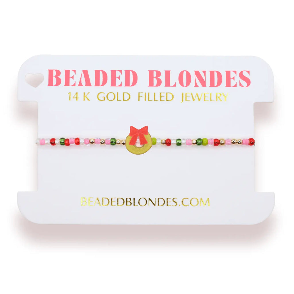 Part of the Beaded Blondes Holiday Collection. Our Wreath Bracelet is available on gold or sprinkle making it perfect to add to your stack for the holidays.