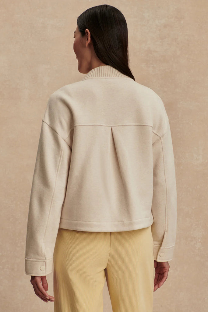 The Khai is an elevated jacket made for everyday styling. Crafted from our Soft Brushed Sweat fabric and cut to a cropped, oversized fit with a varsity-style collar, it's is perfect for layering over high-neck sweats on colder days. Its contemporary drop shoulder design is accentuated with knitted rib details, a snap fastening, and large patch pockets.