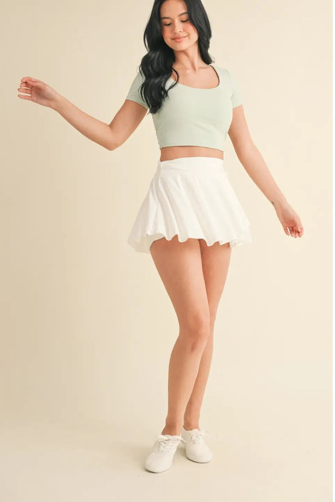 This flirty short sleeve top features a twist back and a charming cutout detail that adds a touch of fun to your look. With removable padding, it offers customizable comfort and support, making it perfect for playful days and casual outings.