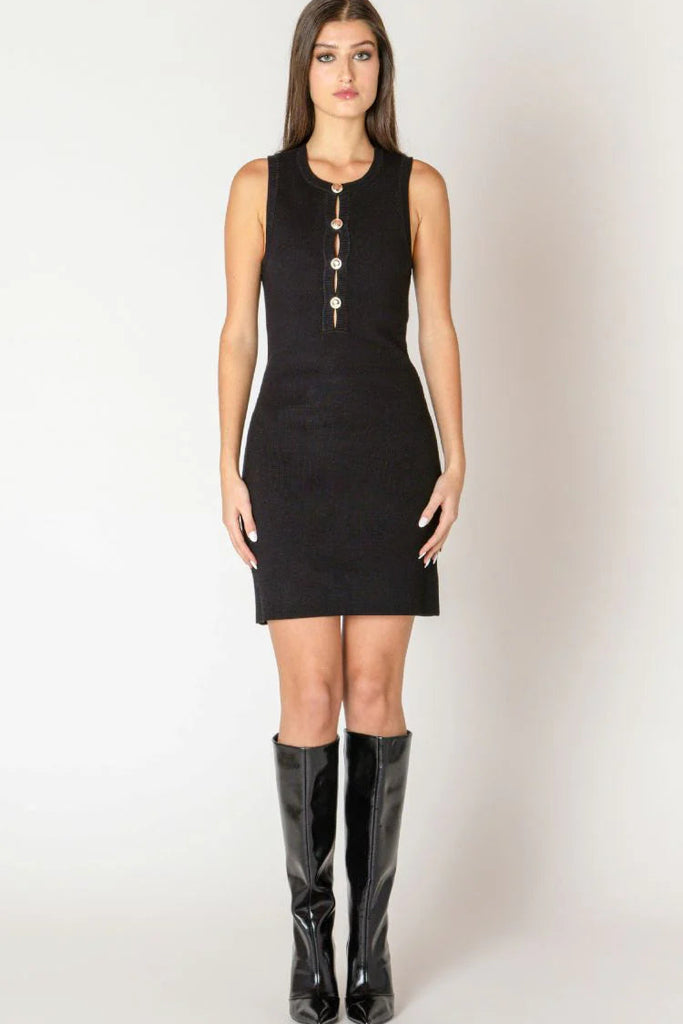 This sweater dress combines cozy comfort with a chic design. Its neck closes neatly with buttons, adding a charming detail. With a slightly longer length, it pairs well with boots or sneakers for a relaxed yet stylish look. Perfect for making casual days feel special.