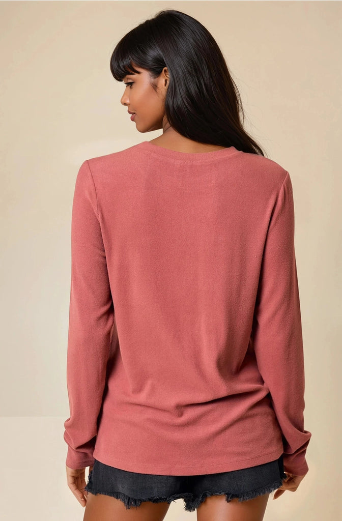 Timeless ribbed knit top featuring a classic round neckline and long fitted sleeves. The soft, stretchy fabric moves with you for all-day comfort, while the slim fit silhouette works seamlessly from casual to dressed-up occasions. A versatile wardrobe essential that pairs with everything.