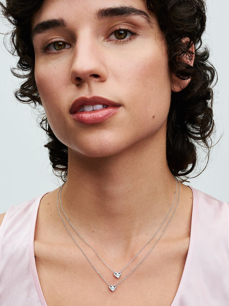 Keep eternal bonds close with our Forever & Always Splittable Heart Collier Necklaces. Crafted in sterling silver, each of the polished heart-shaped pendants are placed on an individual necklace and feature the sweet engravings "Forever" and "Always," symbolizing enduring love. The unique design allows the pendants to slide freely on the chain, while not being completely detachable. Perfect for gifting to someone special or wearing them altogether, these necklaces are a timeless expression of everlasting connections.