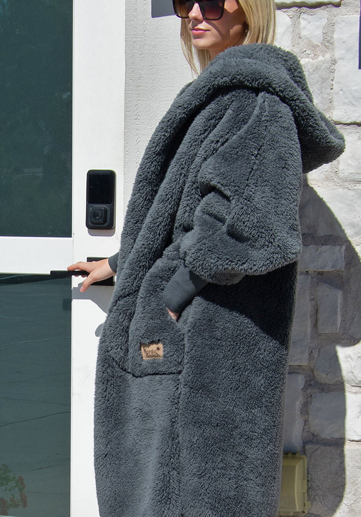The Nordic Beach Long Jacket is a soft and fluffy wrap jacket designed for cozy comfort. Its long length provides extra warmth, making it perfect for cool days by the beach or casual outings. Easy to wear and stylish, this jacket combines comfort with a relaxed look.