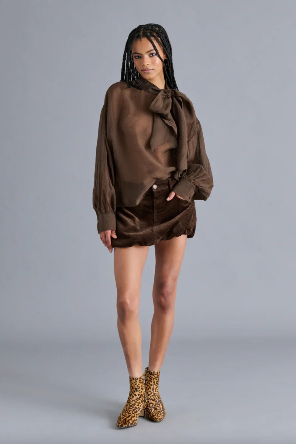 Elevate your wardrobe with the Sutton Top in a rich dark espresso color. Featuring a sophisticated tie-neck detail and billowing sleeves, this blouse offers a modern yet timeless look. Its relaxed silhouette provides effortless style, while the lightweight fabric ensures comfort throughout the day. Perfect for dressing up or down with ease.