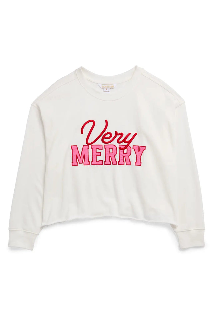 Get in the festive spirit with the "Very Merry" Lounge Sweatshirt—your cozy go-to for holiday cheer! Made from ultra-soft fabric with a relaxed, boxy fit, this cream-colored pullover features bold red and pink embroidery that pops. The playful lettering adds a jolly vibe perfect for cozy mornings, movie nights, or gift wrapping marathons.
