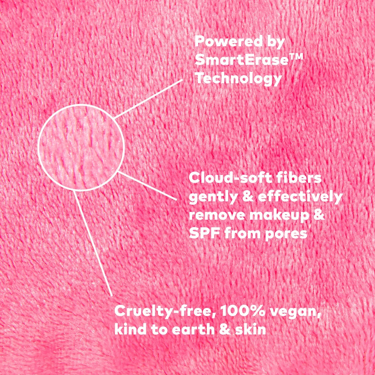 8in x 4in. Remove makeup with JUST WATER™ including waterproof. Our patented, water-activated, cloud-soft fibers gently & easily remove all makeup & sunscreen from pores.