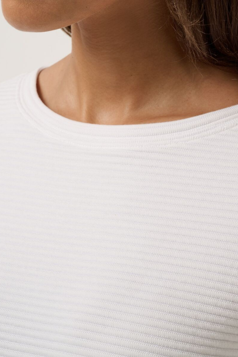 At first glance the CHARTER CRUISE top may look simple, but let us assure you—it’s anything but. Shall we take a closer look? The unique ribbed fabric is the secret sauce here because it delivers an absolutely gorgeous texture that’s super lightweight, ultra-comfortable, and holds its shape all day long. Which means you get to wear the heck out of this wide boatneck collar, drop shoulder, and playful boxy silhouette.