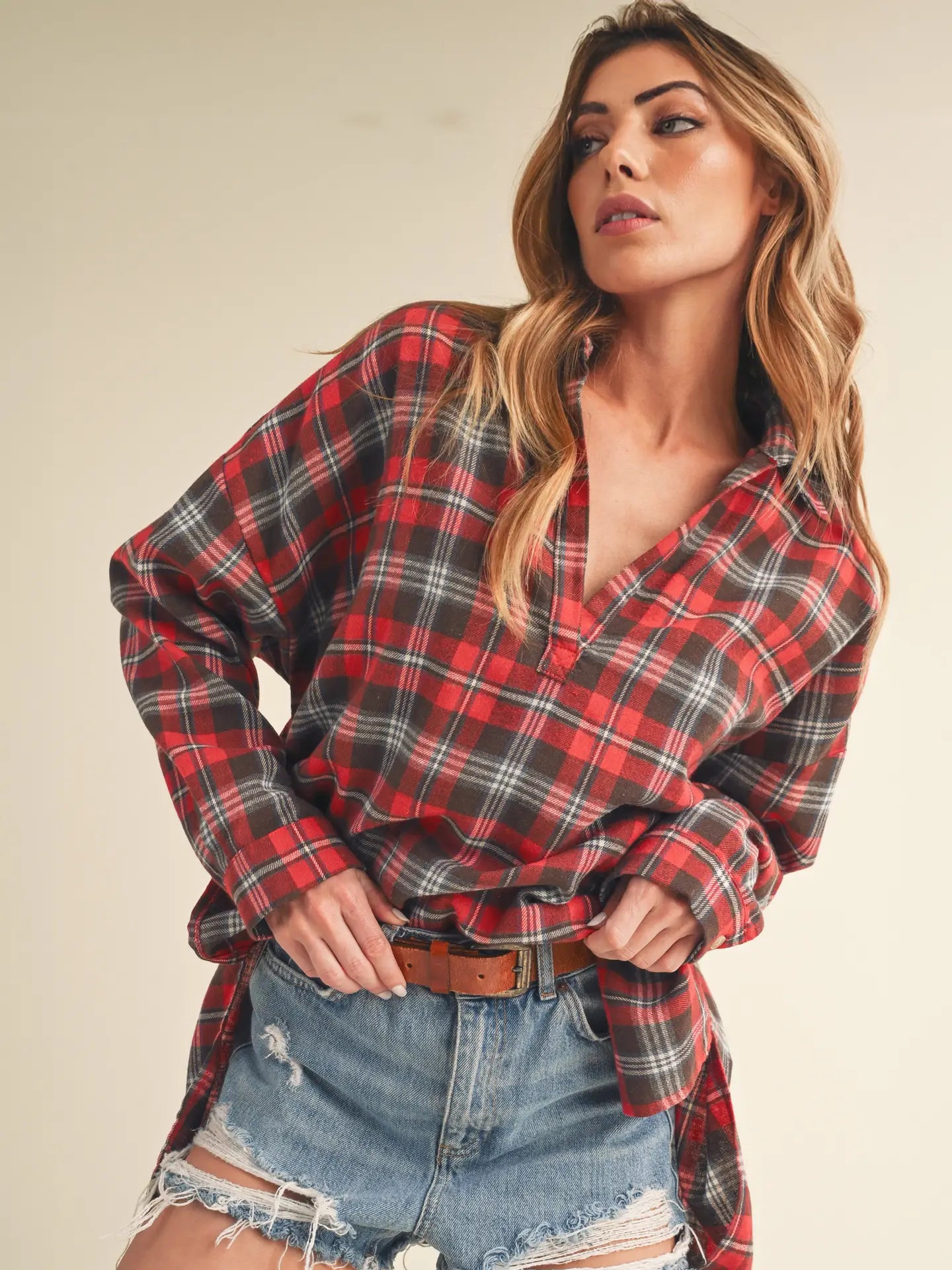 Meet your newest wardrobe must-have – our Tamra pullover Shirt. She is featured in a soft plaid with a relaxed fit but elevated in style. Pair with tailored pants and heels or denim and sneakers for ultimate versatility. A shirt that effortlessly takes you from chic to casual.