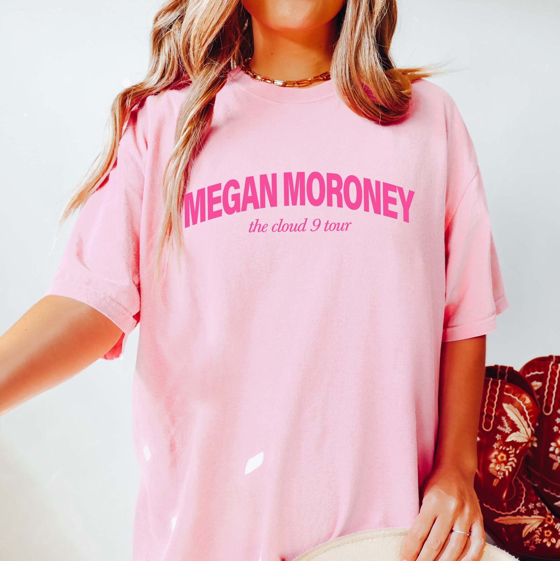 Celebrate your love for live music with this Cloud 9 Tour Tee, inspired by Megan Moroney's unforgettable performances. Crafted from soft, comfortable cotton, this tee features tour-inspired graphics that make a bold statement. Perfect for concert fans and casual wear alike, it's a must-have piece for your wardrobe. Whether you're heading to a show or just want to rep your favorite artist, this tee delivers style and comfort in one.