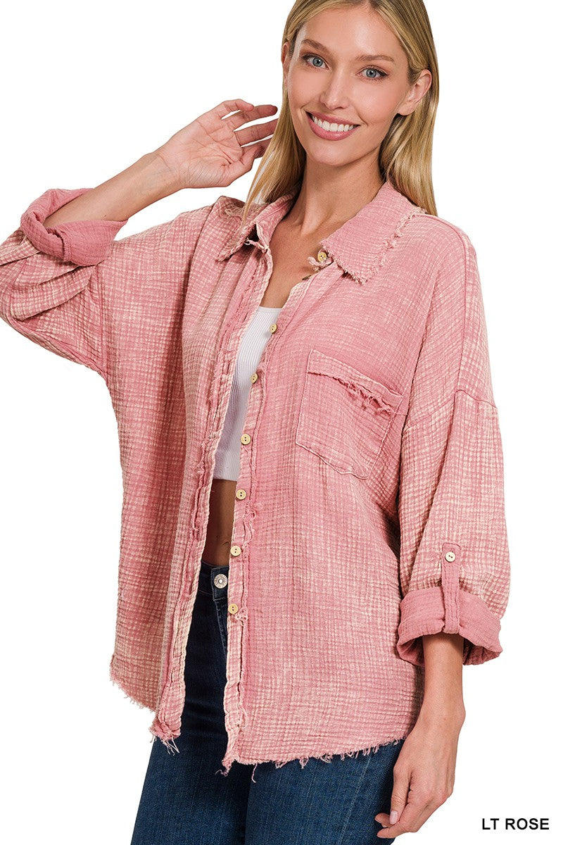 Soft, lived-in, and effortlessly relaxed—this washed gauze button-down is made for layering, lounging, and everything in between.